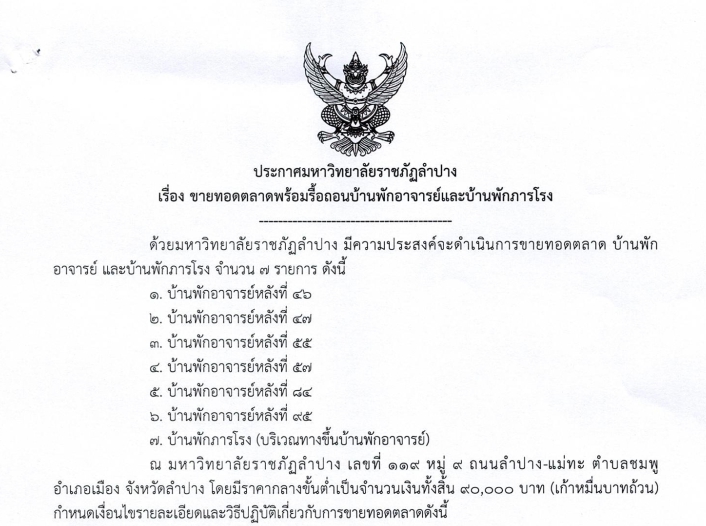 ประกาศขายทอดตลาดพร้อมรื้อถอนบ้านพักอาจารย์และบ้านพักภารโรง การจัดซื้อจัดจ้าง ประกาศการจัดซื้อจัดจ้าง by ผู้ดูแลระบบ - มิถุนายน 1, 20200 เปิดอ่านแล้ว : 332 ประกาศมหาวิทยาลัยราชภัฏลำปาง รายละเอียดเพิ่มเติม ลักษณะบ้านพัก รายละเอียดเพิ่มเติม แสดงความคิดเห็น commentsGD Star Ratingloading... Share on FacebookShare on TwitterShare on Linkedin Facebook iconFacebookLINE iconLine