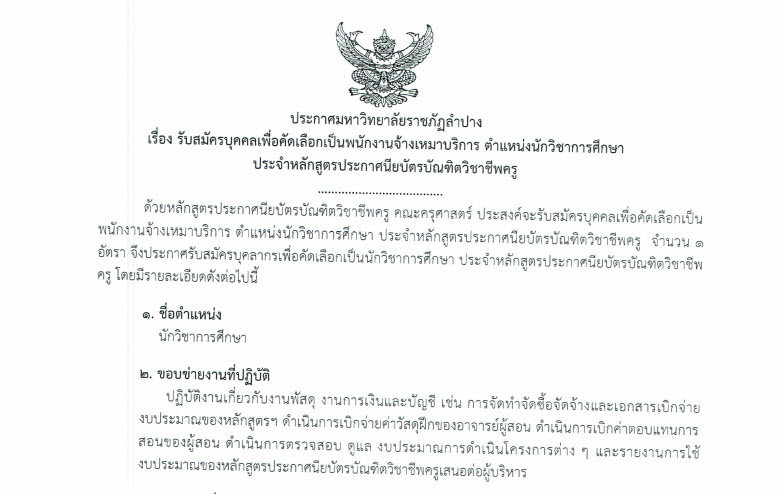 ประกาศมหาวิทยาลัยราชภัฏลำปาง