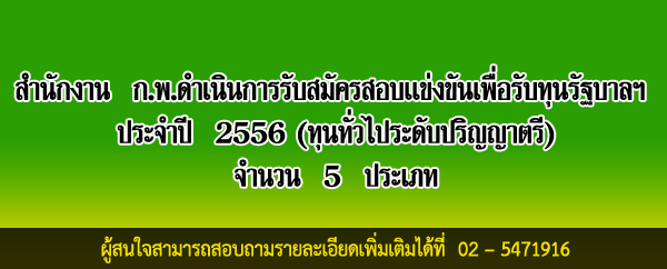 สำนักงาน ก.พ.ดำเนินการรับสมัครสอบแข่งขันเพื่อรับทุนรัฐบาลฯ ประจำปี 2556 (ทุนทั่วไประดับปริญญาตรี),